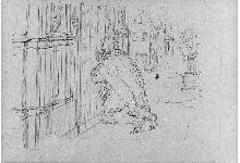 Disegno, su carta bianca leggera. Personaggi: Sebastiano Longo. Oggetti: balaustra. Elementi architettonici: tomba; colonnine tornite; piumacoli