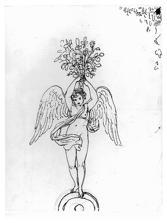 Angelo con mazzo di rose per il tavolo del generale Kosciuszko, elementi decorativi (disegno, opera isolata)