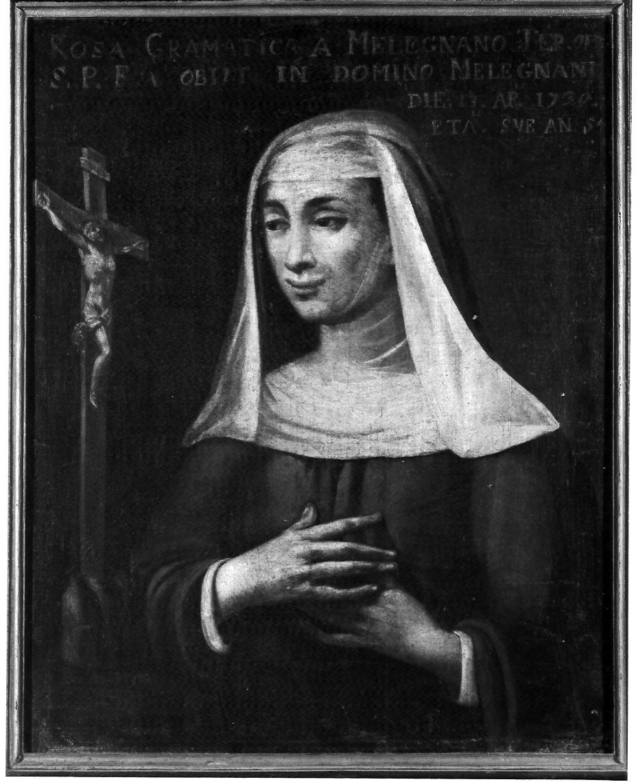 Ritratti: Rosa Gramatica. Abbigliamento religioso: saio da terziaria francescana; velo; sottogola. Oggetti: crocifisso