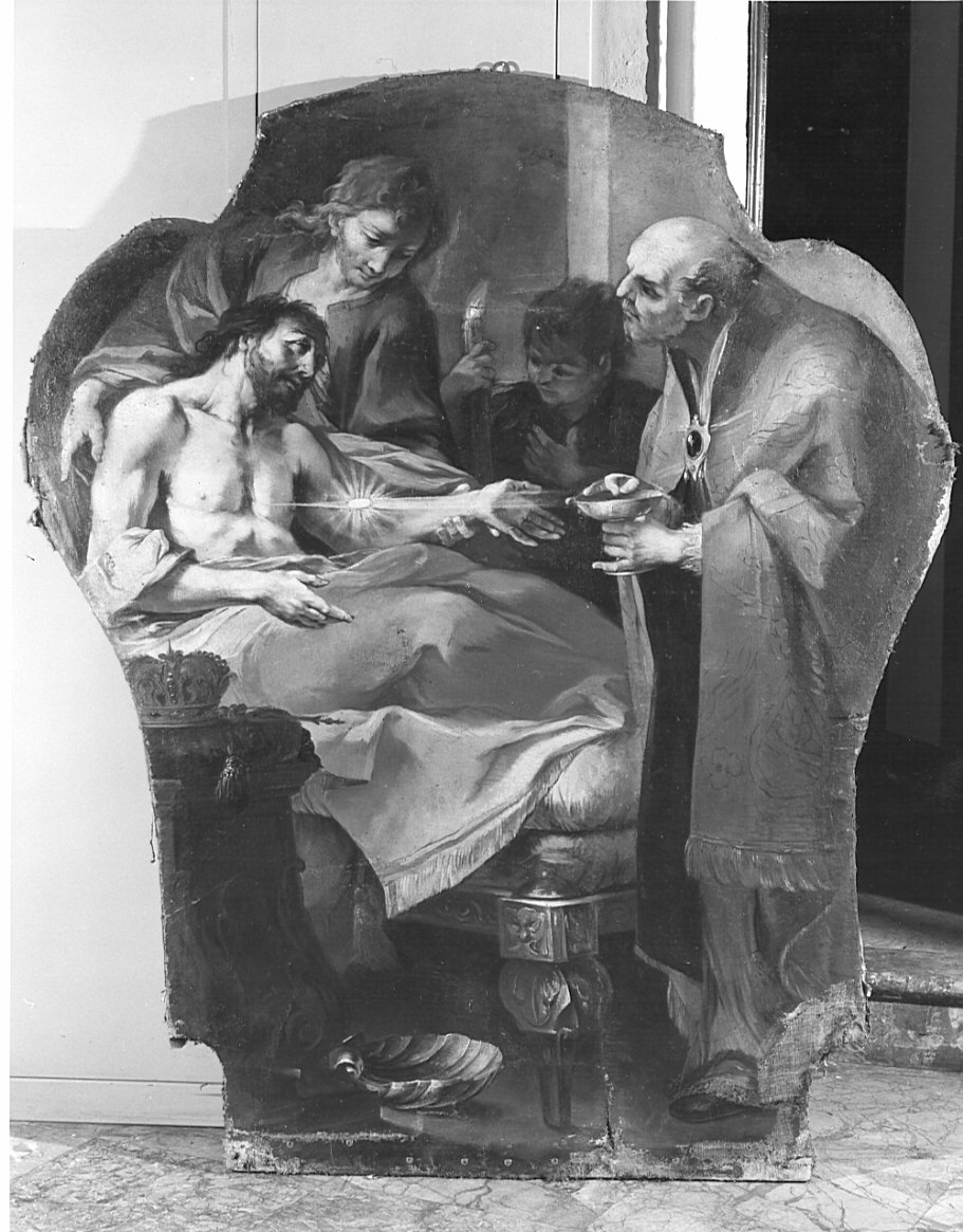 Ricci Sebastiano; Ricci Sebastiano, San Gaetano conforta un moribondo, apparizione di San Gaetano da Thiene ad un moribondo assistito da un sacerdote (dipinto, opera isolata)