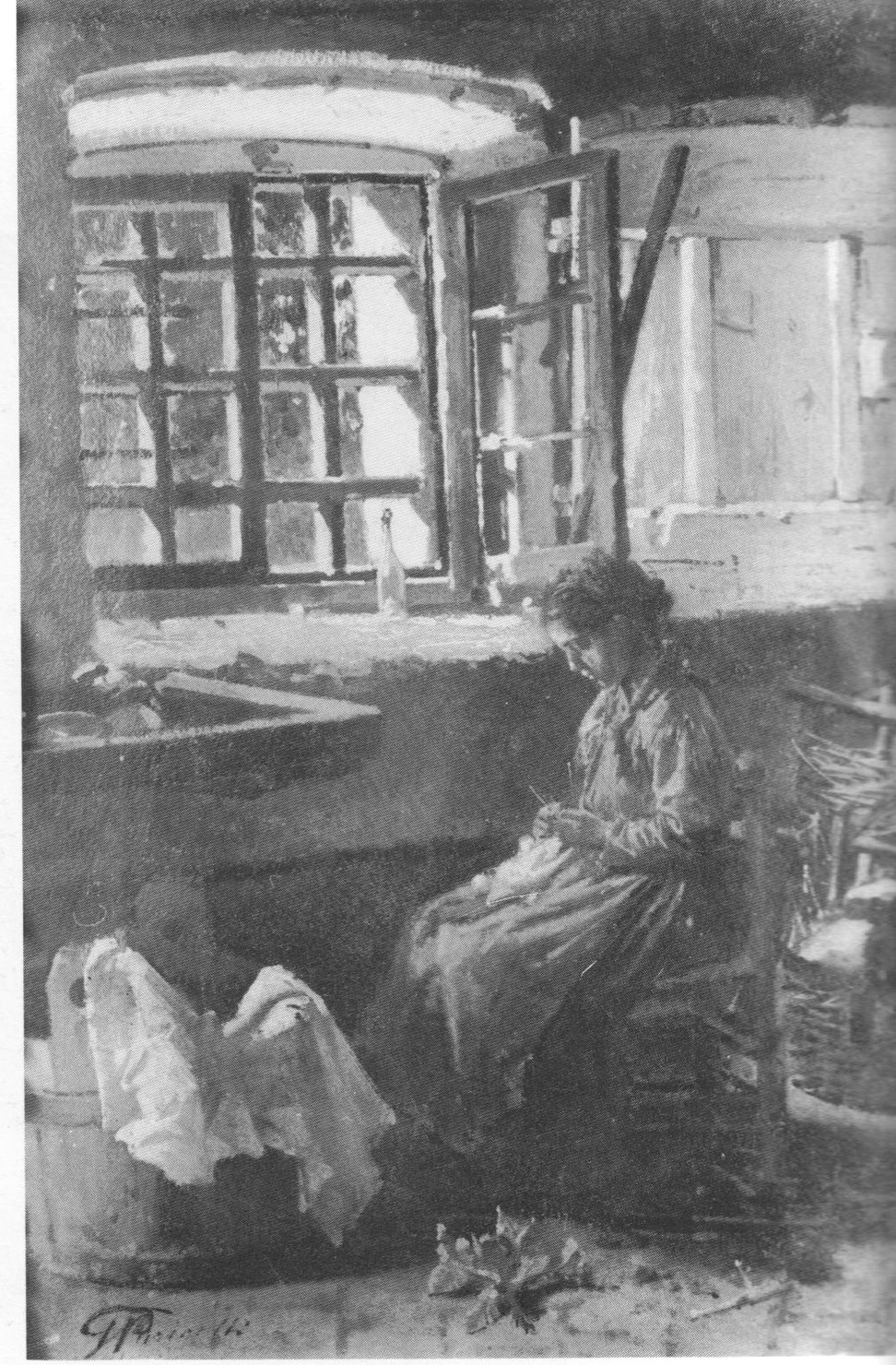Fanciulla intenta al lavoro, figura femminile seduta che lavora (dipinto, opera isolata)