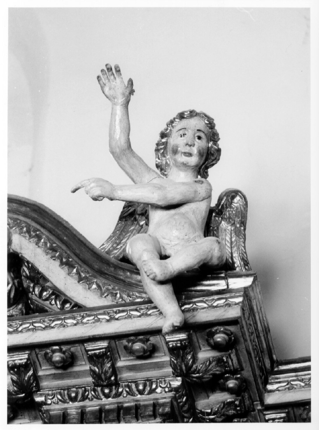 La statua è seduta sopra la parte terminale della mostra.. Figure: Angelo