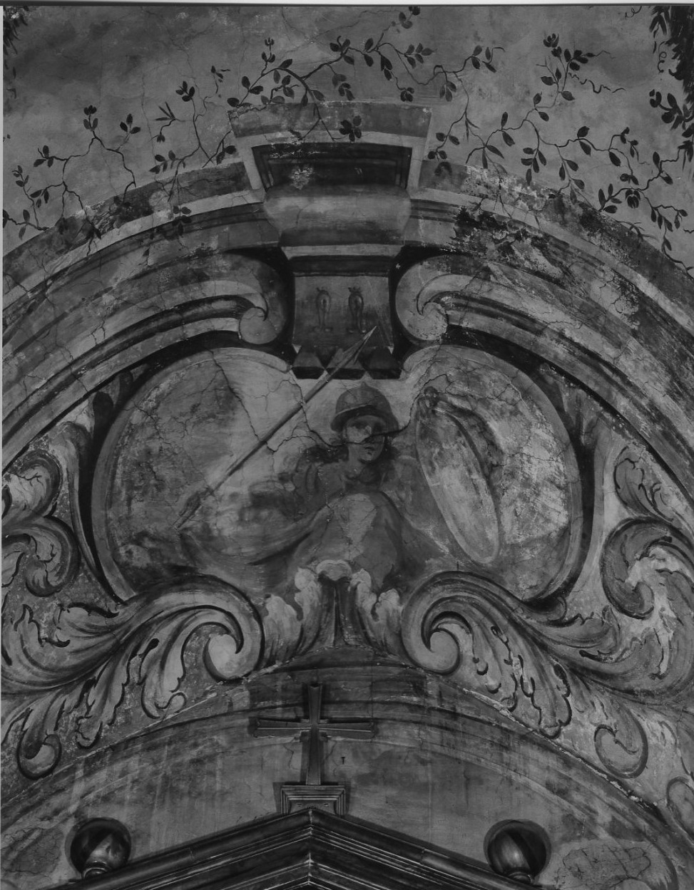 Donna che indossa un elmo e reca in mano una spada e uno scudo (Fortezza).