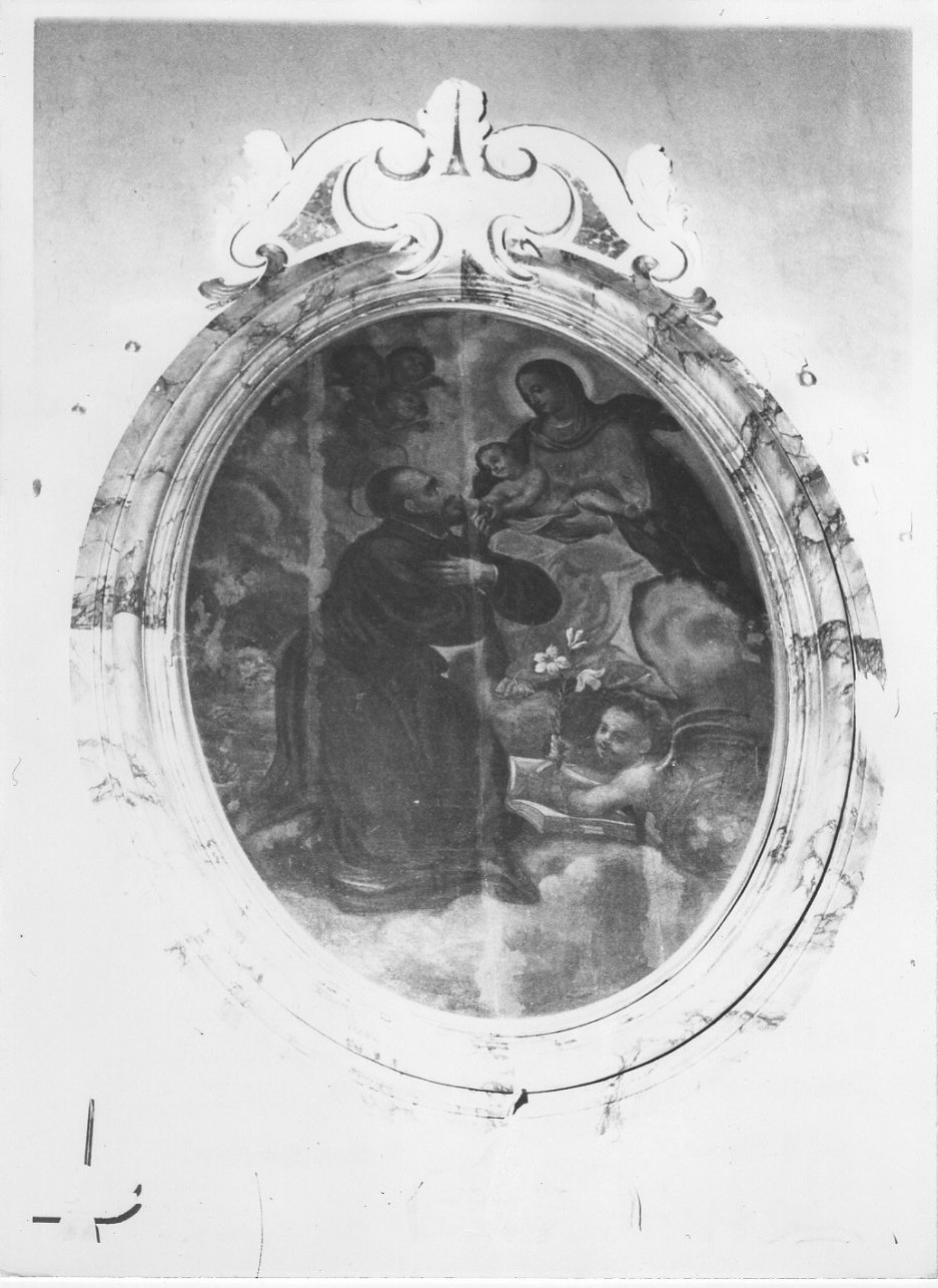 Nel dipinto è raffigurata l'apparizione della Madonna con Bambino a S. Gaetano da Thiene. In basso a destra è presente un angioletto con giglio e libro aperto in mano.. Personaggi: Madonna; Bambino; S. Gaetano. Attributi: (S. Gaetano) giglio. Figure: angeli