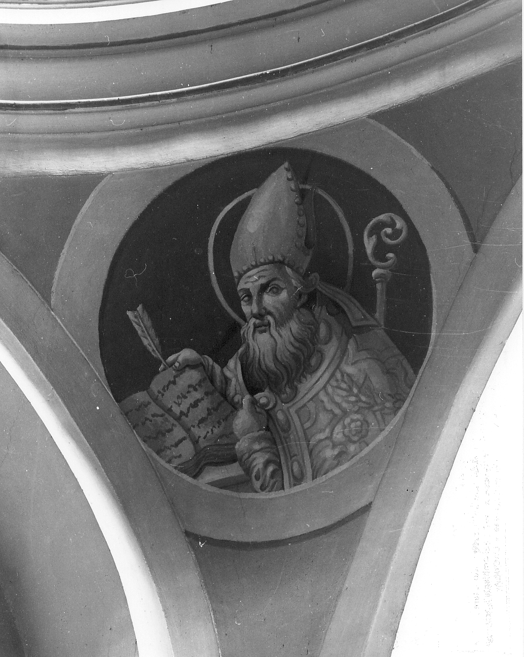 Nei pennacchi sono raffigurati, entro tondi, i quattro dottori della Chiesa.