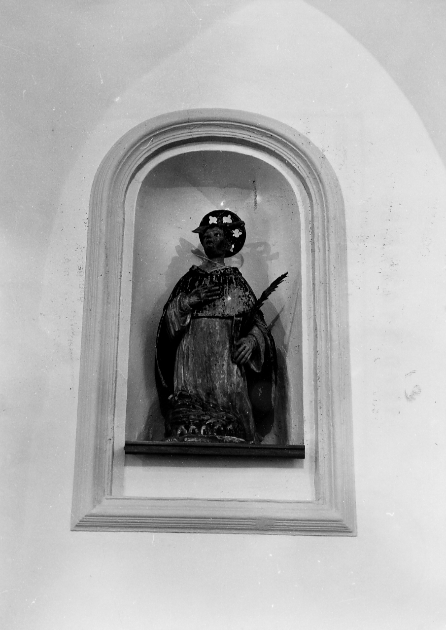Attributi: (San Pietro martire) palma del martirio; pugnale sulla testa.