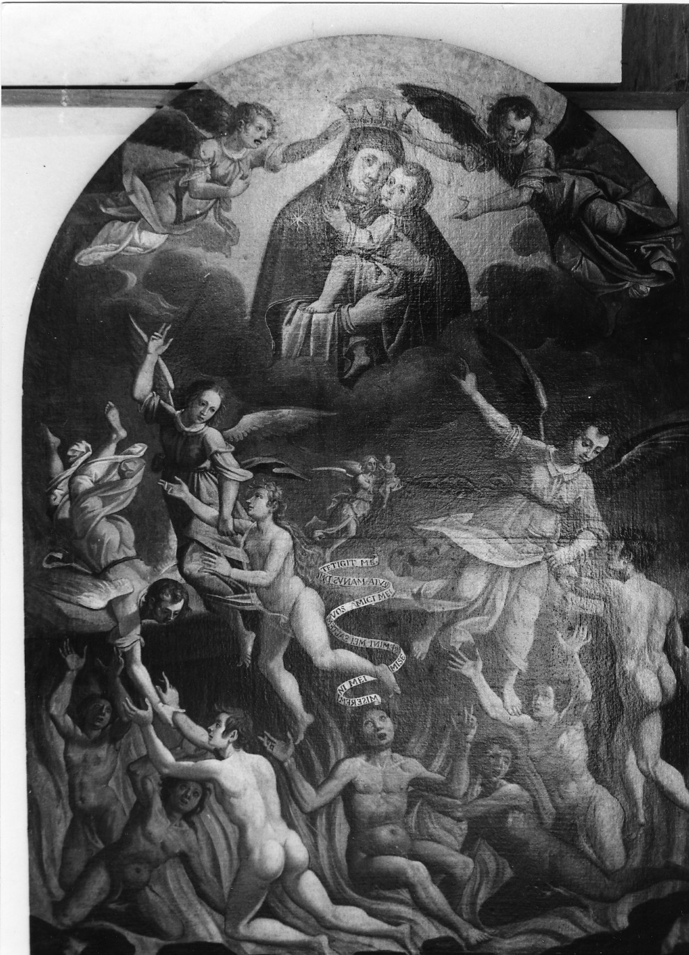 Al centro del dipinto è raffigurata la Vergine con il Bambino mentre sta per essere incoronata da due angeli. In basso, tra le lingue di fuoco anime purganti vengono sollevate da angeli. Al centro è un cartiglio con scritte.