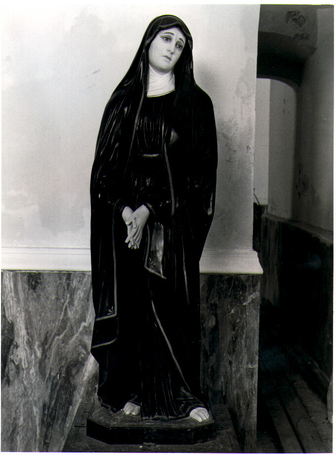 La Santa veste l'abito dell'ordine, ha le mani giunte ed il capo reclinao a destra.