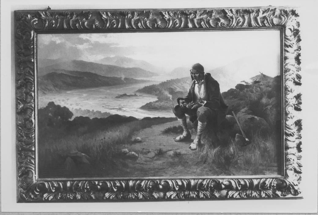 Paesaggi: fluviale. Fiumi: Agri. Figure: contadino. Costruzioni: capanna. Oggetti: bastone; pane