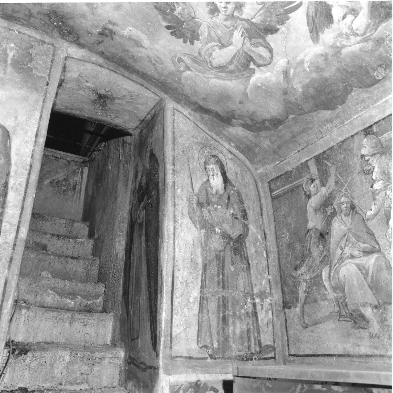 Affresco.. Personaggi: Gesù Cristo; Madonna; Maria di Magdala. Figure: santi; apostoli; soldati. Architetture. Elementi architettonici: colonna