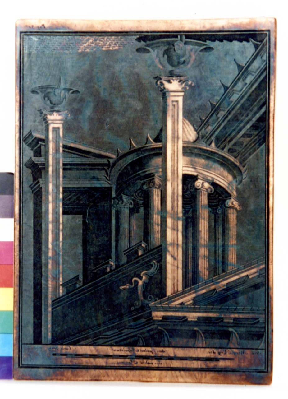 Architetture fantastiche: tholos; scorcio architettonico