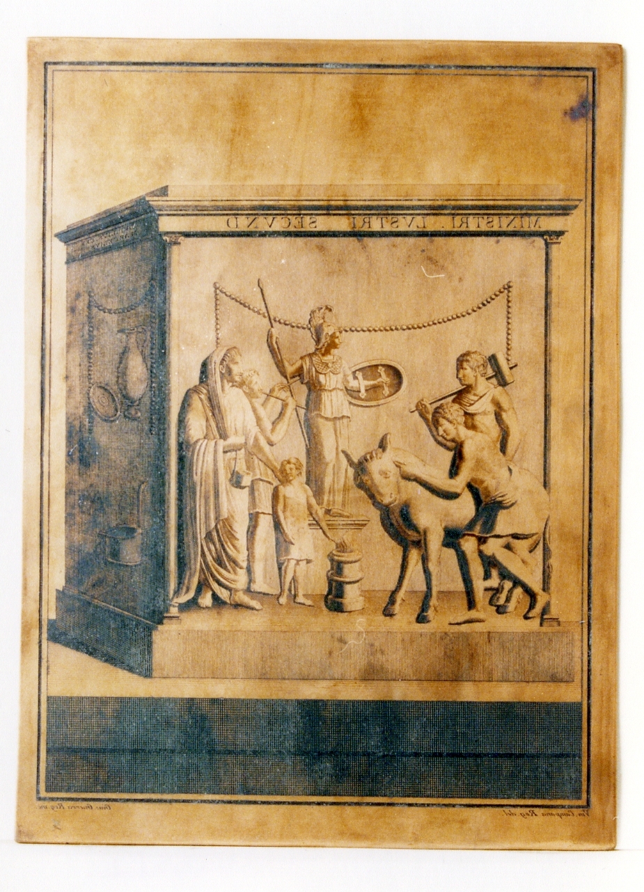ara con scena di sacrificio di un toro a Minerva e iscrizione latina (matrice)