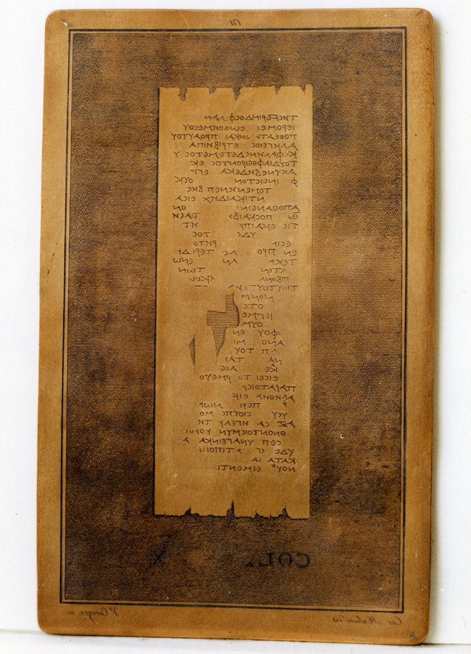 Casanova Giuseppe; Casanova Filippo; Casanova Giuseppe; Casanova Filippo, testo greco da Filodemo «storia dei filosofi. Platone e la sua scuola»:col. XXXIV. (matrice)