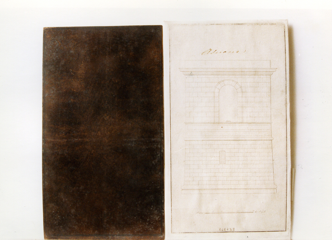 campanile della chiesa di Santa Chiara a Napoli: ordini inferiori. (stampa controfondata smarginata)
