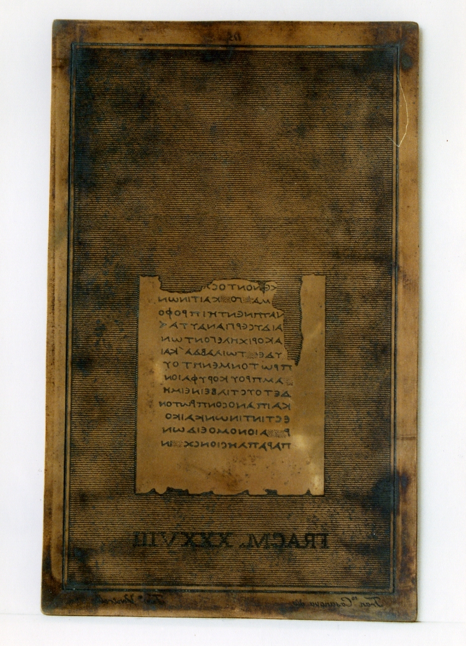 Biondi Francesco; Casanova Francesco; Biondi Francesco; Casanova Francesco, testo greco: fragm. XXXVII, fragm. XXXVIII. (matrice)