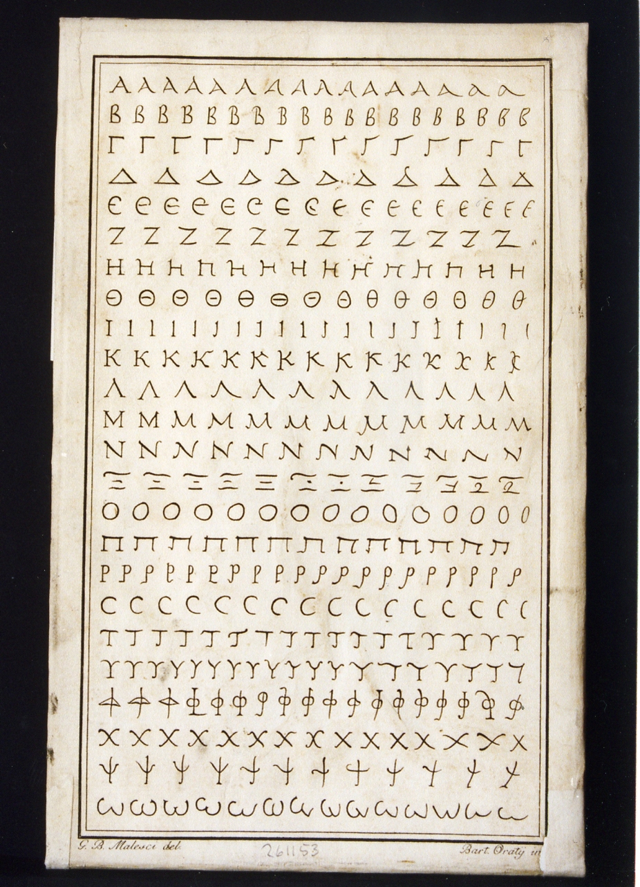 D'Orazio Bartolomeo; Malesci Giovanni Battista; D'Orazio Bartolomeo; Malesci Giovanni Battista, alfabeto greco (matrice)