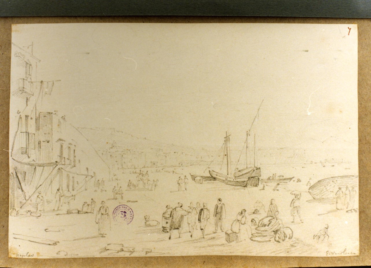 Carelli Consalvo; Carelli Consalvo, Mergellina, veduta del borgo di Mergellina a Napoli (disegno)