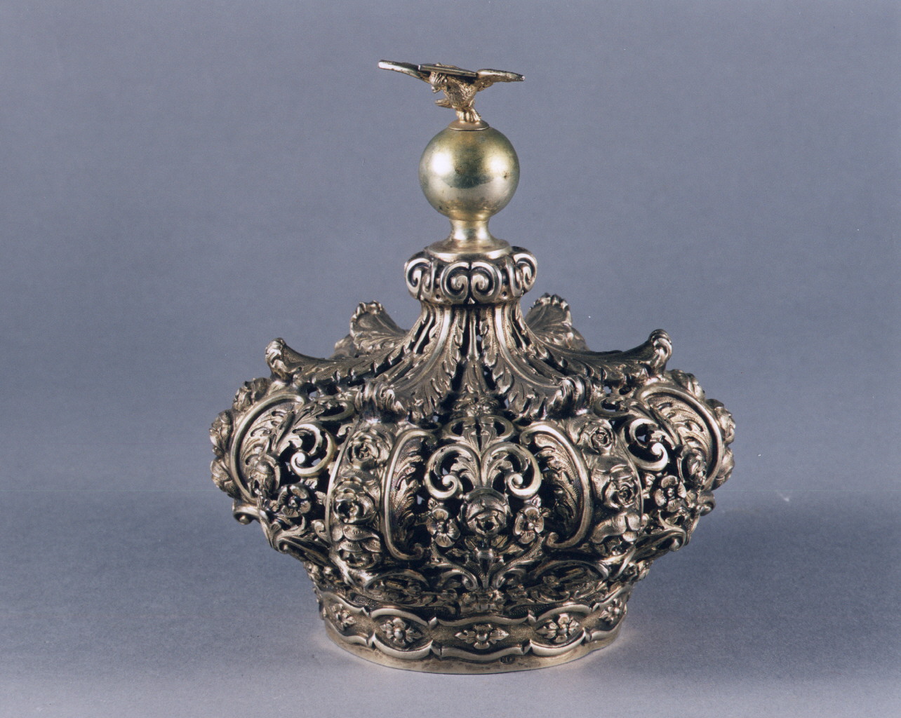 La testiera è sormontata da un globo, con un'aquila che sorregge un triangolo, fissato con una vite.
