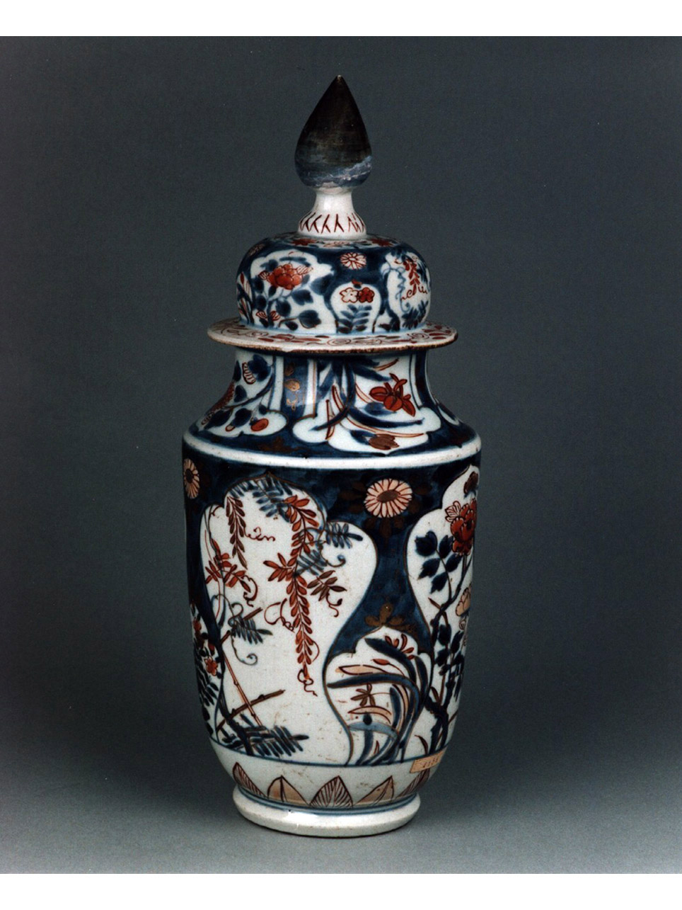 Vasetto con coperchio in porcellana dipinta del tipo Imari.