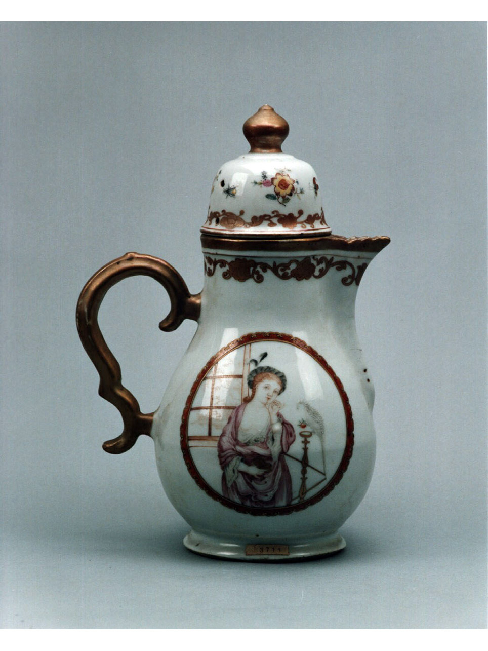 Caffettiera in porcellana dipinta del tipo Famiglia Rosa.