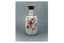 Bottiglia in porcellana dipinta in monocromia rossa su fondo bianco.
