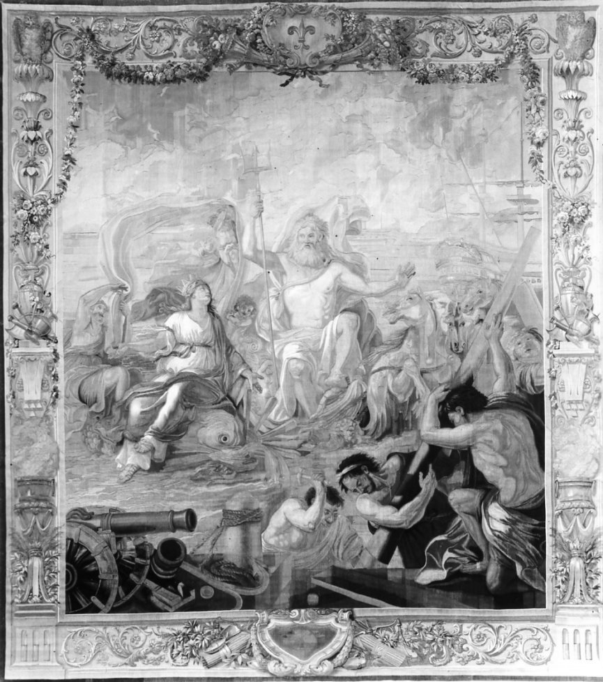 Arazzo.. Divinità: Nettuno. Divinità minori: Nereidi; Tritoni. Personificazioni: Partenope