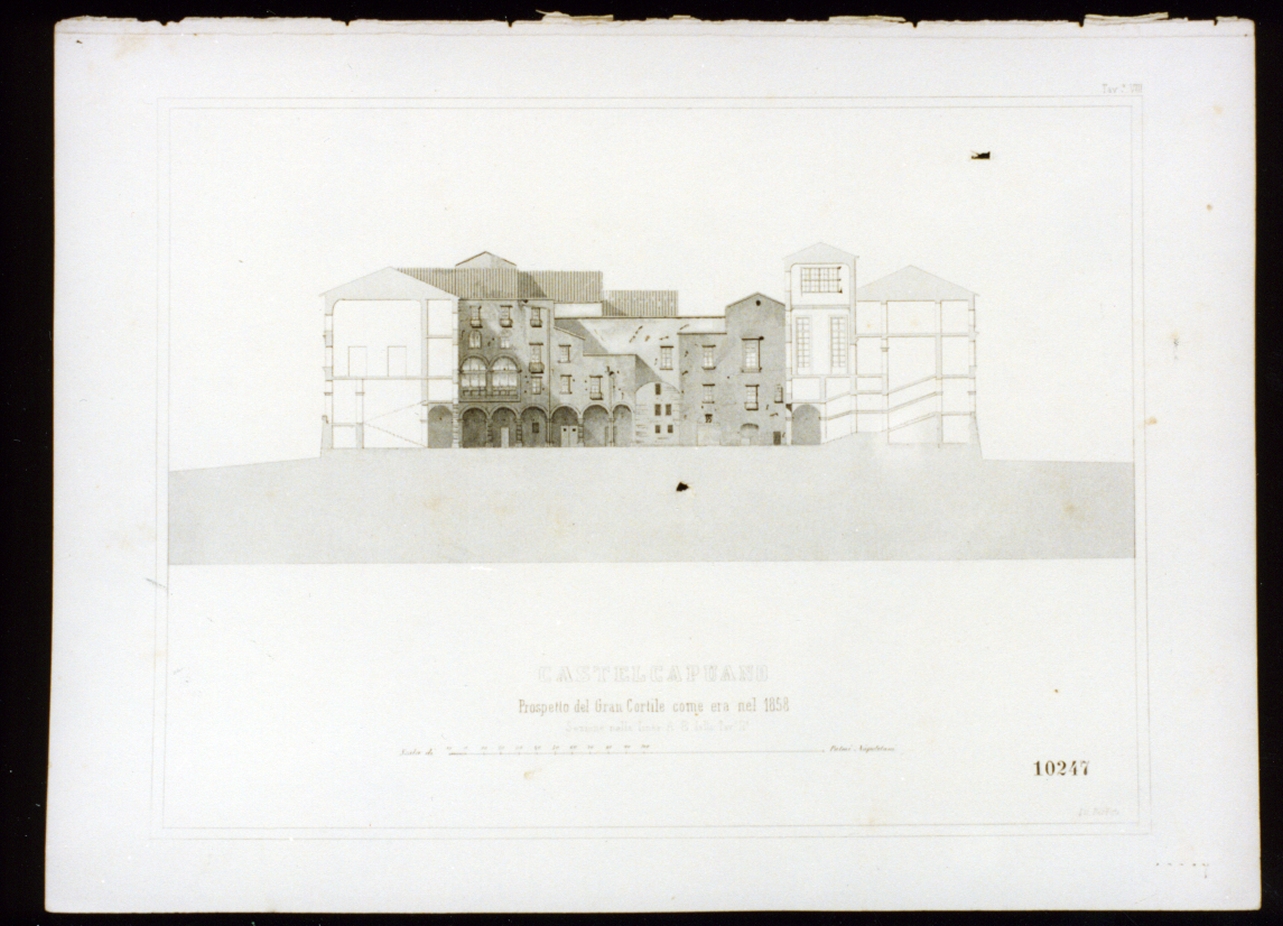 prospetto del cortile di castel Capuano a Napoli (stampa)