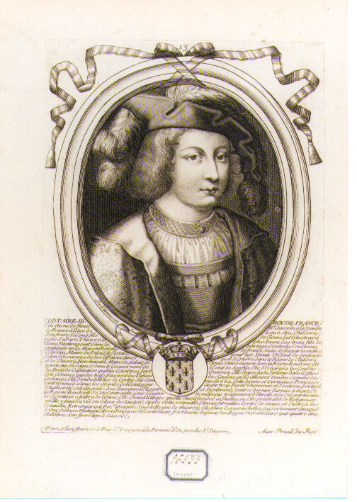 RITRATTO DI CLOTARIO III RE DI FRANCIA (stampa controfondata smarginata)