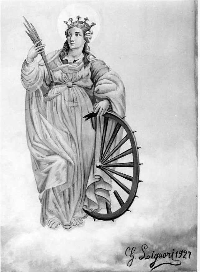 L'affresco raffigura Santa Caterina d'Alessandria con i simboli del martirio.. Personaggi: Santa Caterina d'Alessandria. Simboli del martirio: ruota