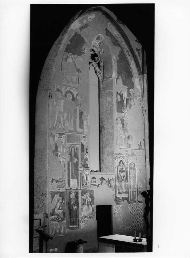 Il ciclo rappresenta le storia della vita di San Gregorio Mgno e San Giovanni Battista; San Leonardo e l'Annunciazione; Sant'Antonio.