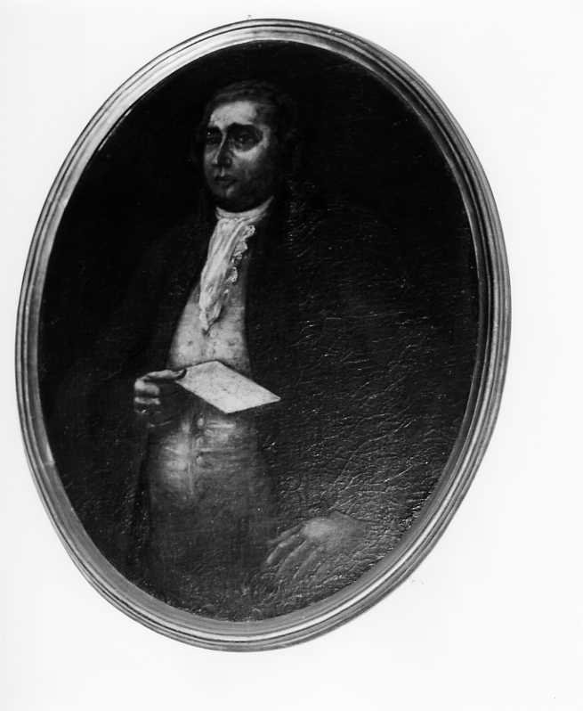 Il dipinto rappresenta il ritratto di Giovan Battista Mustilli.. Personaggi: Giovan Battista Mustilli. Attributi: (Giovan Battista Mustilli) foglio