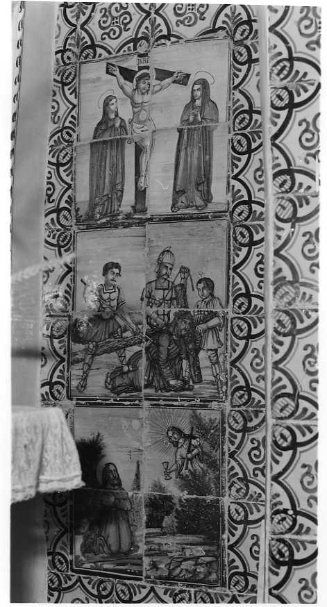 La prima immaggine rappresenta Cristo nell'orto degli ulivi mentre un angelo gli consegna il calice e la croce simboli della futura pasione. Nel Calvario il figlio di Dio è rappresentato mentre gli aguzzini gli legano la croce sulle spalle ed un soldato lo ferisce al costato con una lancia. Nella Crocifissione; Cristo è attorniato dalle due Marie in preghiera.