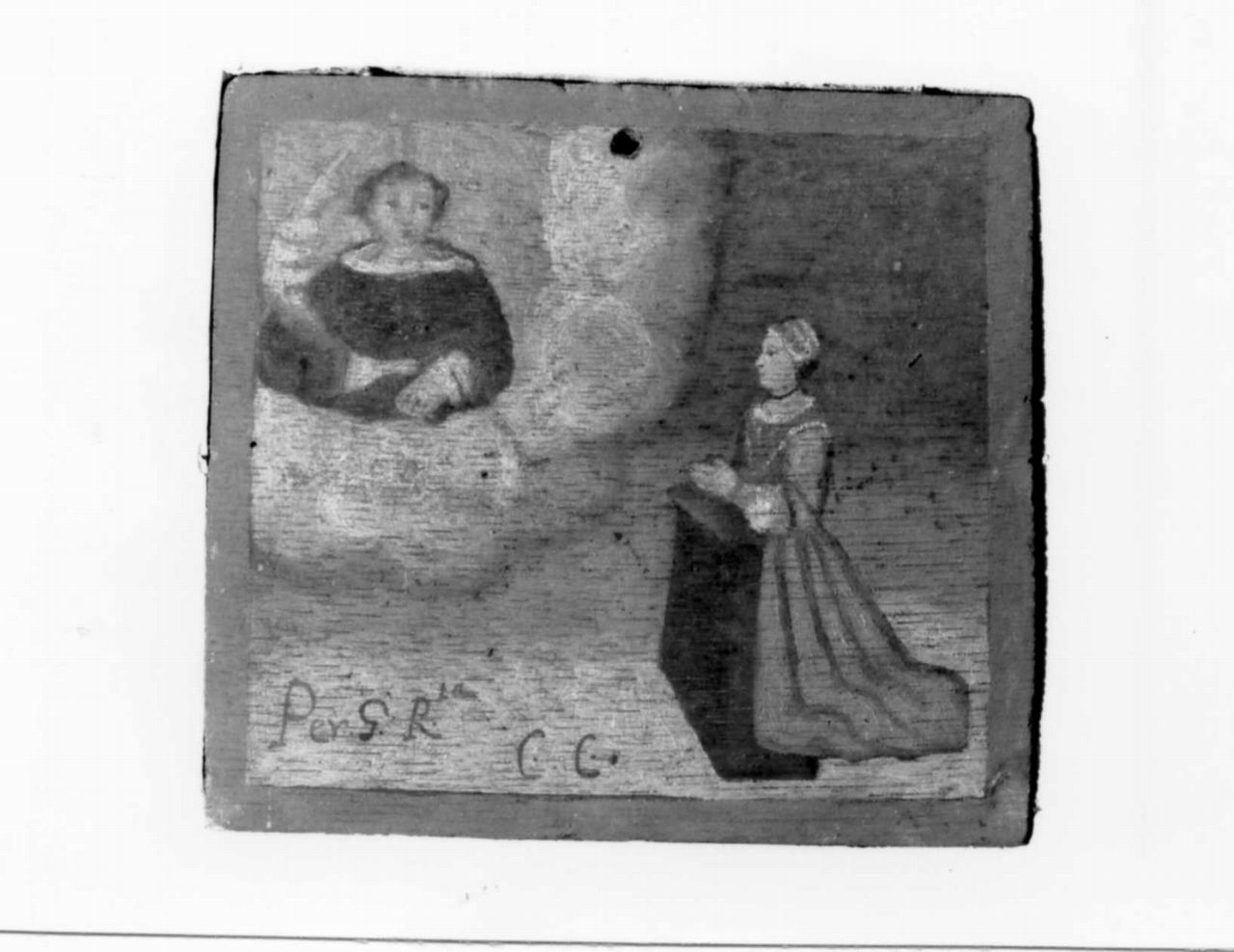 Santo appare ad una devota in preghiera (ex voto)