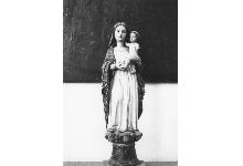 Statua in stucco a tutto tondo, policromata con abiti su tonalità azzurre e rosse listate d'oro.. Personaggi: Madonna; Bambino
