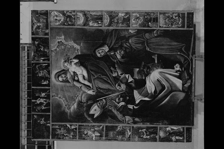 Madonna del Rosario con San Domenico, San Martino vescovo (?), Santa Chiara, San Francesco e Misteri del Rosario