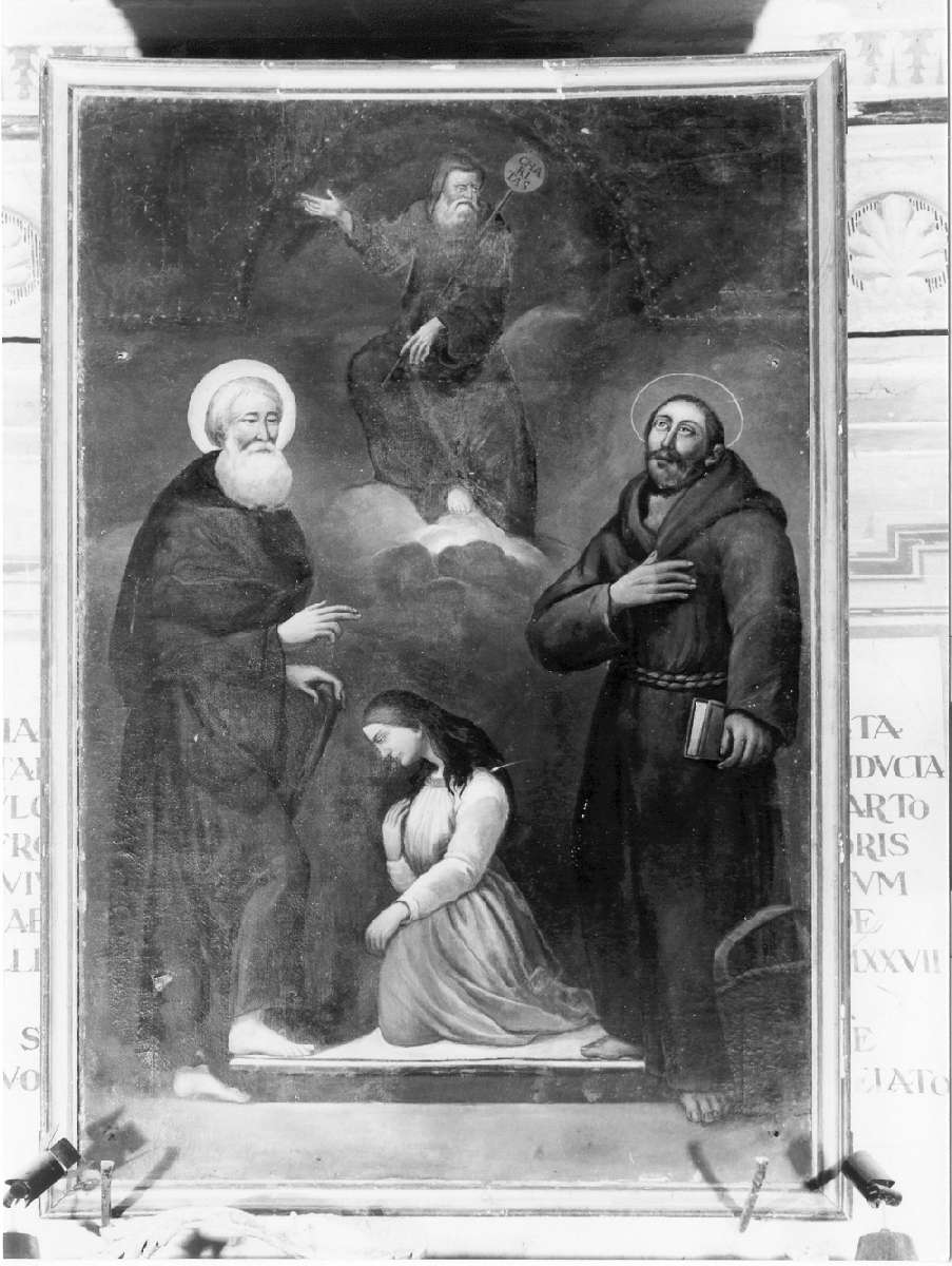 San Francesco di Paola in gloria con Sant'Antonio abate, San Francesco d'Assisi e una fedele