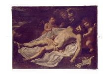 Cristo deposto sorretto da angeli, Dio Padre e la colomba dello Spirito Santo