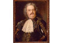 Personaggi: Ranuccio II Farnese. Abbigliamento: corto farsetto con maniche aperte; gonna detta girello arricchita in vita da balze e nastri; camicia con grande colletto in organza ricamato. Animali: cane. Elementi architettonici