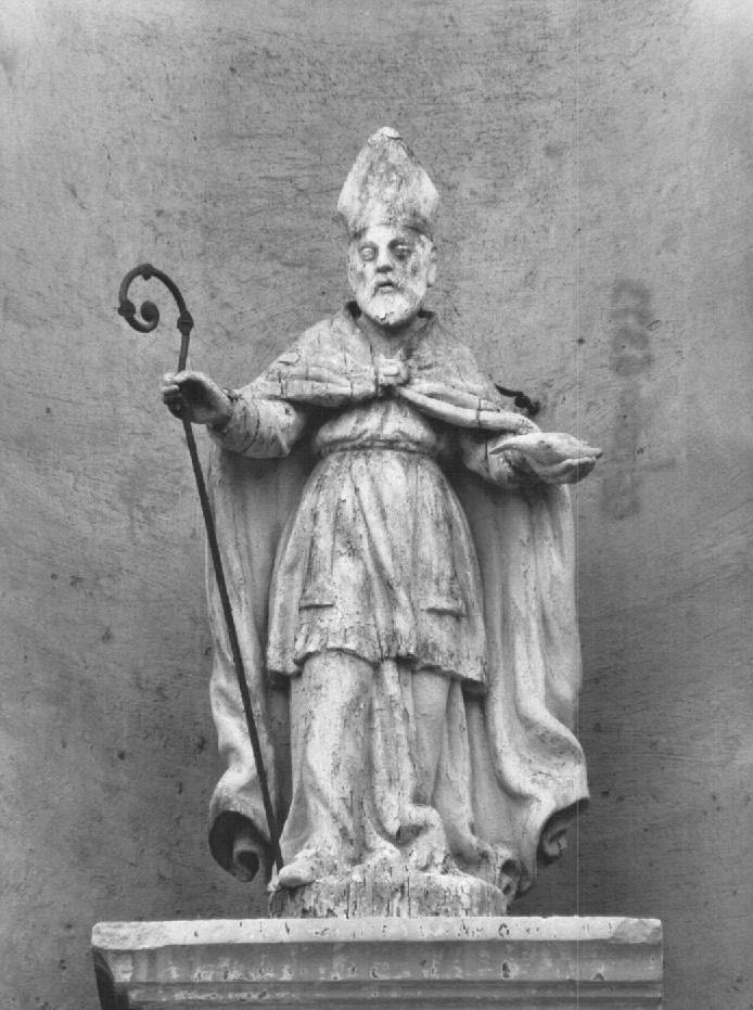 Scultura a tutto tondo.. Personaggi: S. Ulderico. Attributi: (S. Ulderico) pastorale; colomba. Abbigliamento religioso