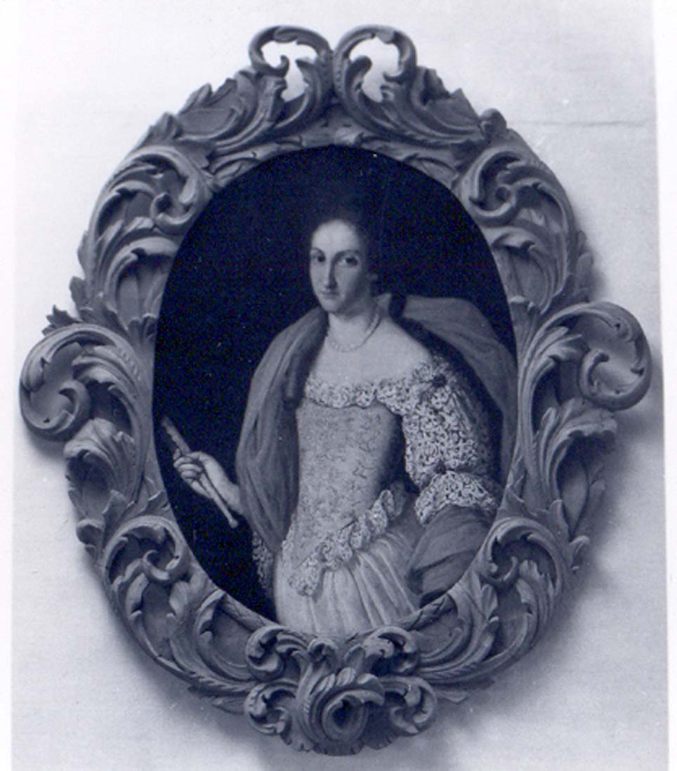 Olio su tela in ovato in cornice ovale a foglie verde pallida.