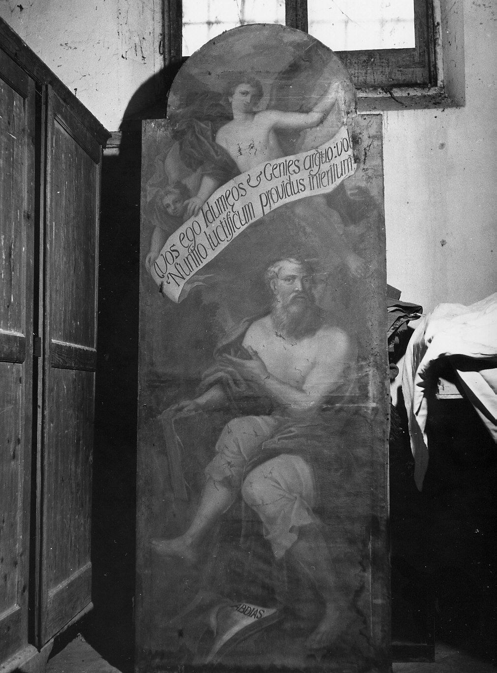 Dipinto con coronamento ad arco a sesto eccedente.. Personaggi: profeta Abdia. Oggetti: libro. Figure: angeli