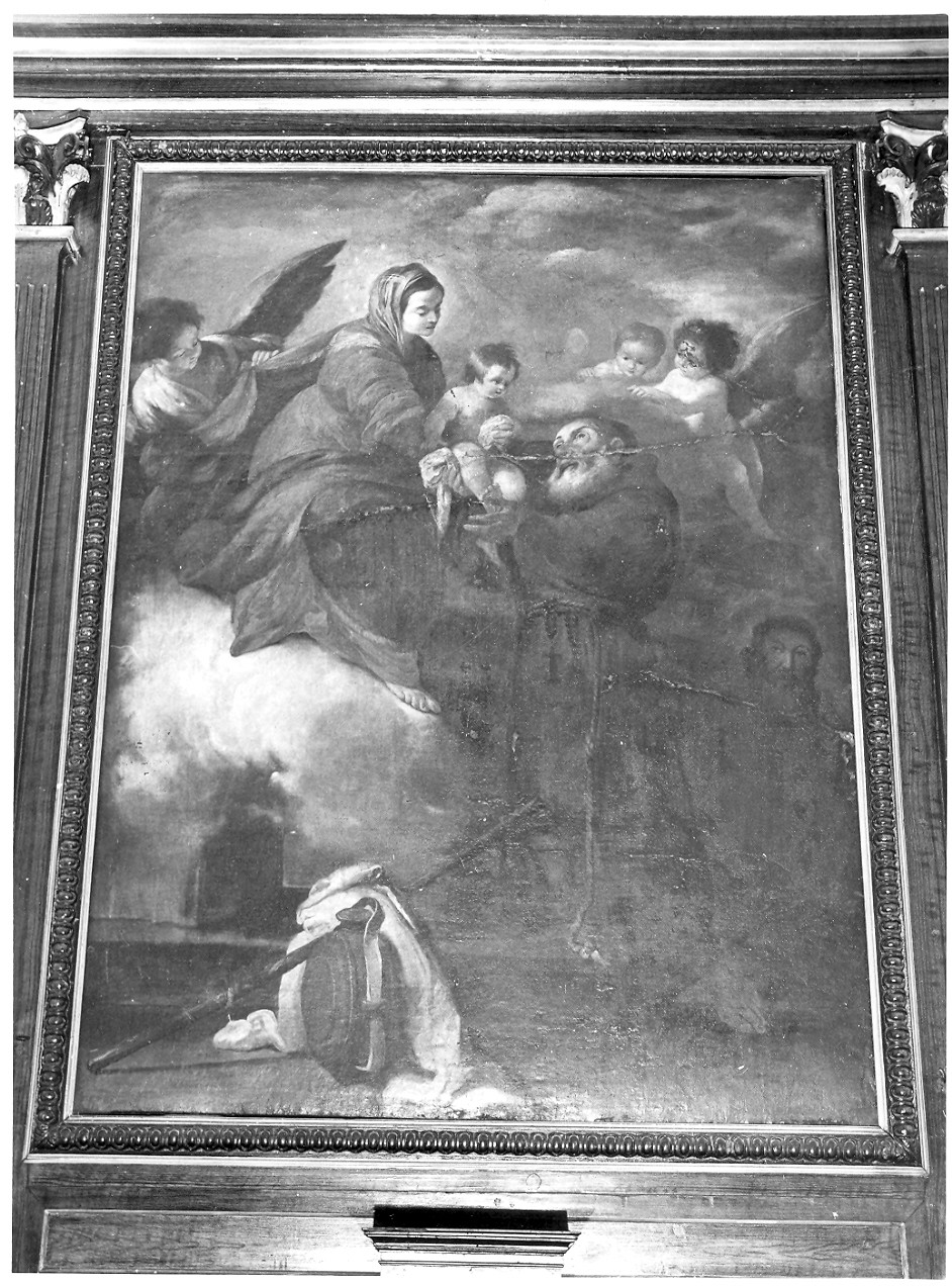 Personaggi: Madonna; Gesù Bambino. Beati: Felice da Cantalice. Attributi: (Beato Felice da Cantalice) borraccia; bisaccia; bastone. Fenomeni naturali: nuvole. Figure: angeli