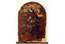 Personaggi: Santo capuccino; Gesù Cristo crocifisso. Attributi: ( Santo) pastorale; mitra. Figure: Angeli. Oggetti: tavolo; libro