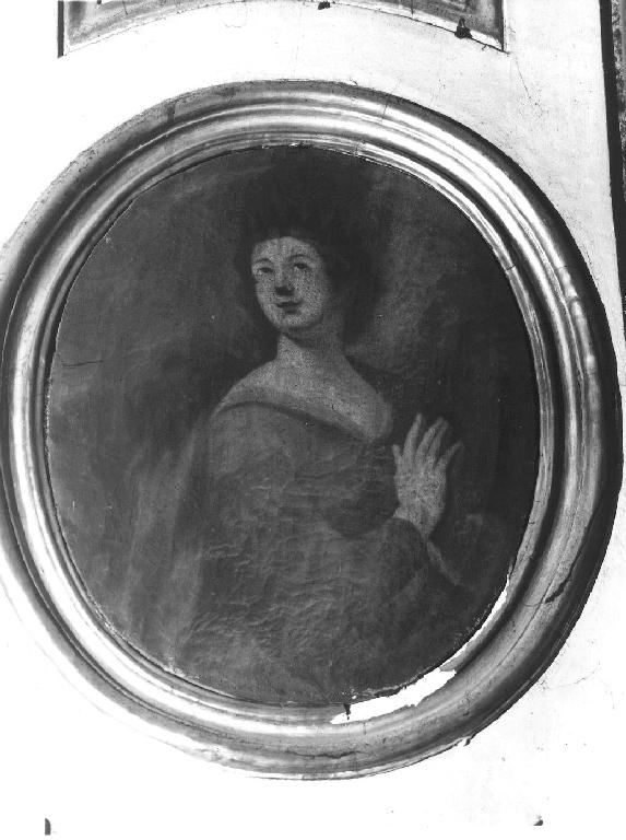 DIPINTO SU TELA SU TELAIO OVALE INSERITO IN CORNICE DORATA.