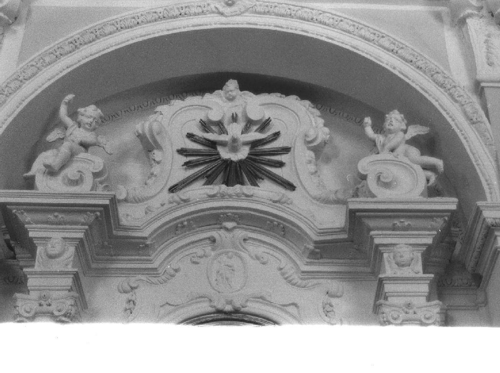 colomba dello Spirito Santo fra due angioletti/ colomba dello Spirito Santo e cherubini (fastigio d'altare, coppia)