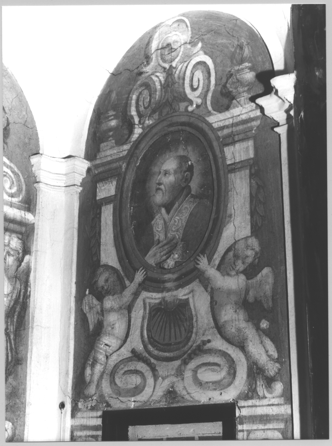 San Francesco/ San Filippo Neri/ angeli reggicornice/ motivi decorativi architettonici (dipinto, serie)