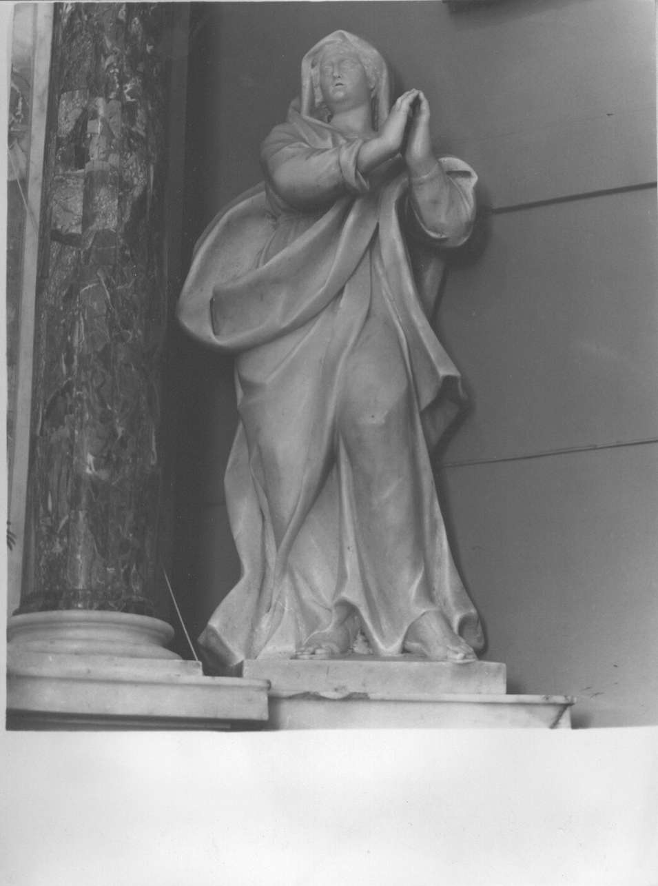 La statua è lavorata solo anteriormente. La santa avvolta nell'ampio mantello, ha le mani giunte in gesto di preghiera.. Personaggi: Santa Marta