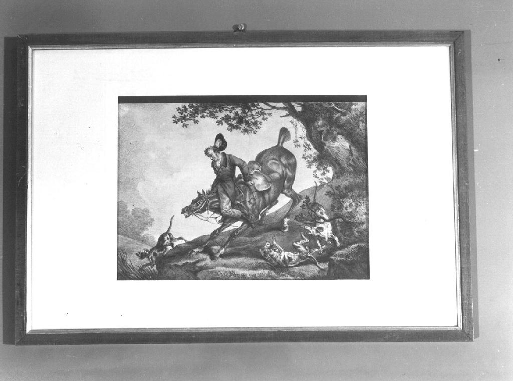 CADUTA DA CAVALLO DURANTE LA CACCIA (stampa colorata a mano)