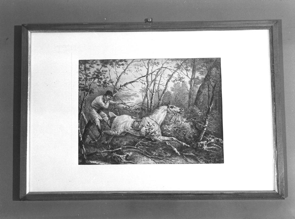 CADUTA DA CAVALLO DURANTE LA CACCIA (stampa colorata a mano)