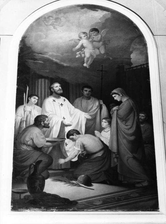 Sant'Ermete Martire, prefetto di Roma, mentre riceve il Battesimo insieme al figlio Elio e alla moglie dalle mani del Papa Alessandro., battesimo di Sant'Ermete (dipinto)
